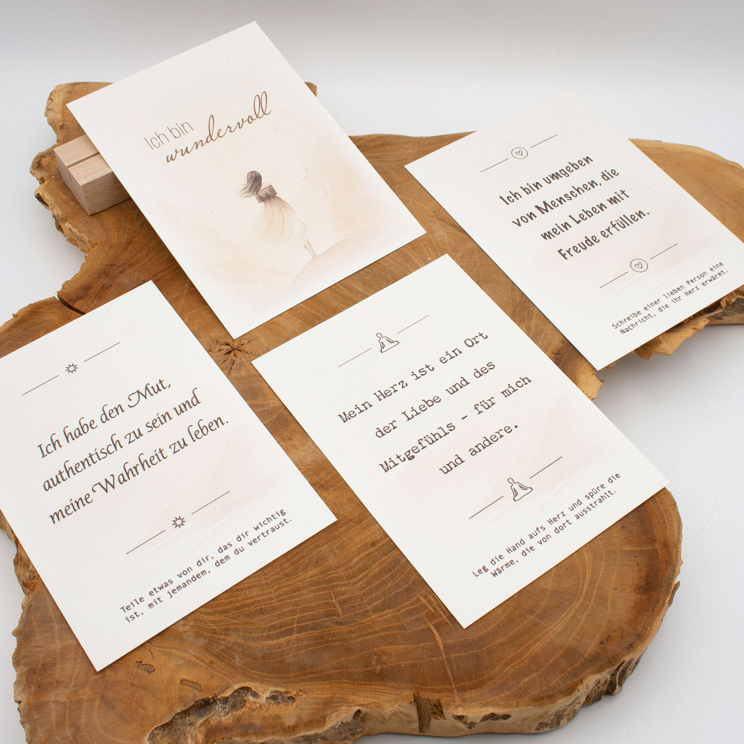 20 liebevoll gestaltete Affirmationskarten in DIN A6 – perfekt für Erwachsene, besonders Frauen, und ein ideales Geschenk für Weihnachten.