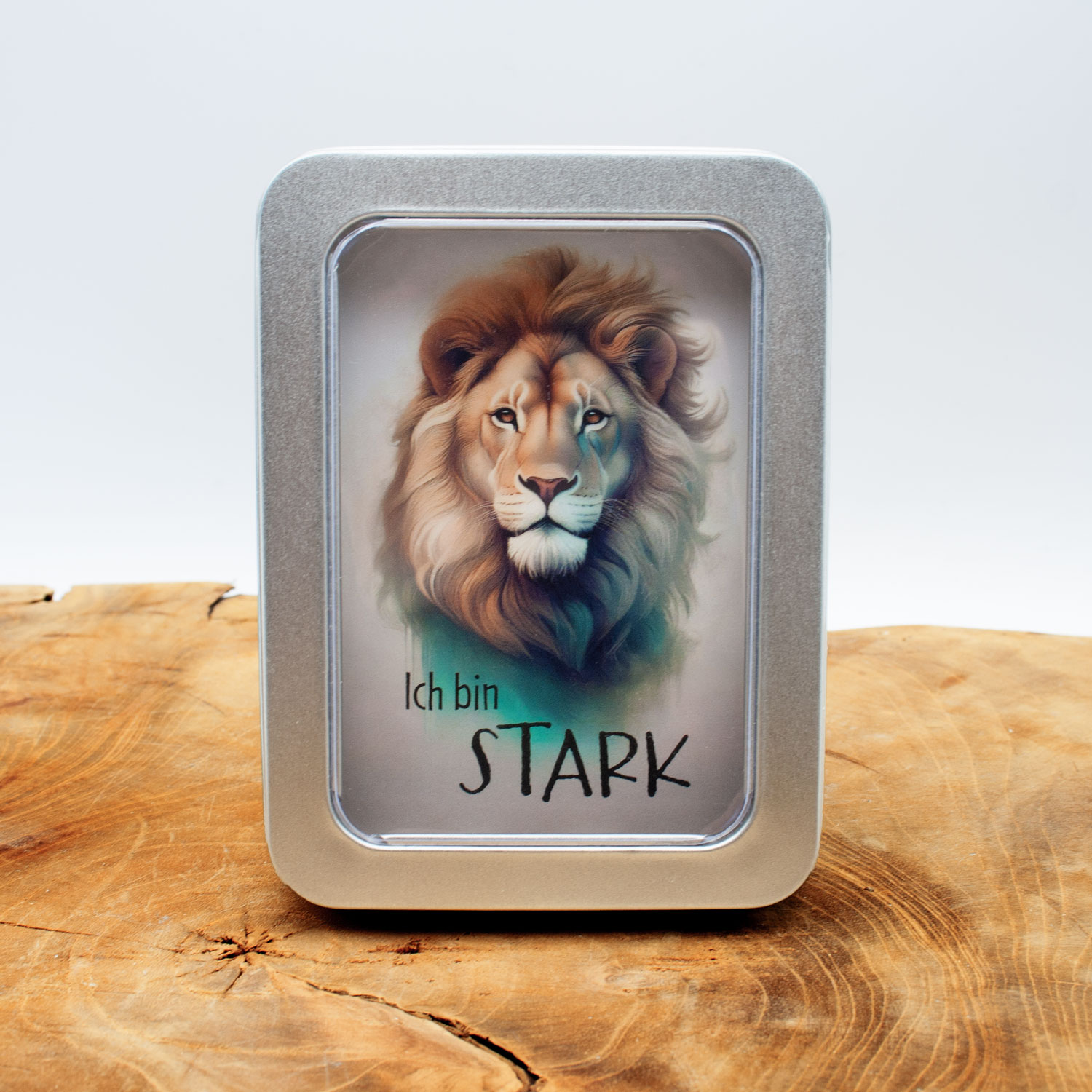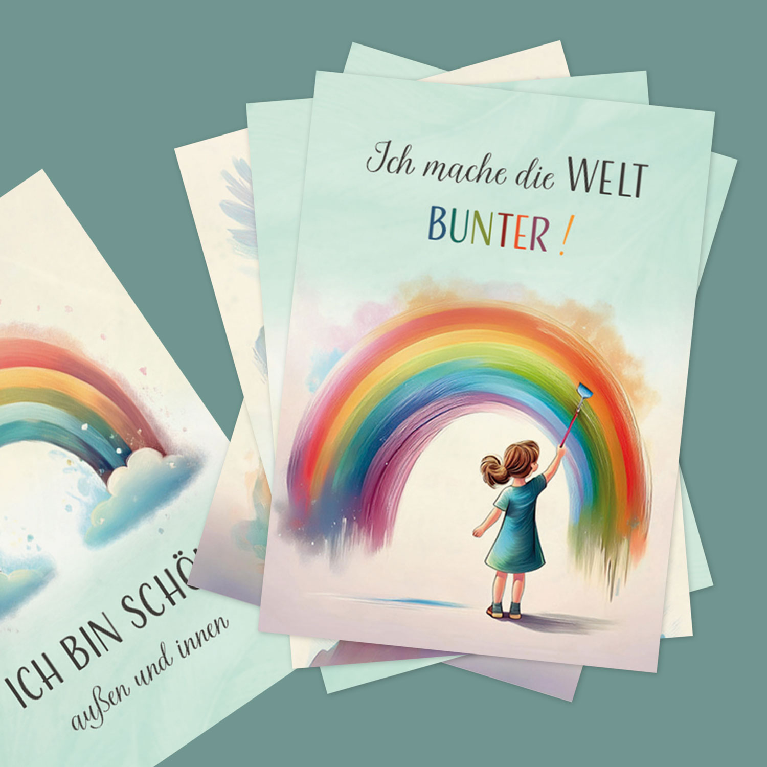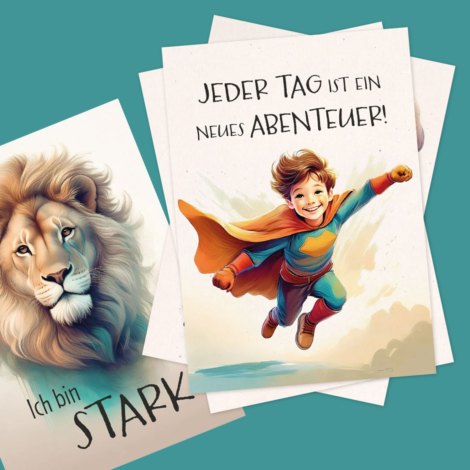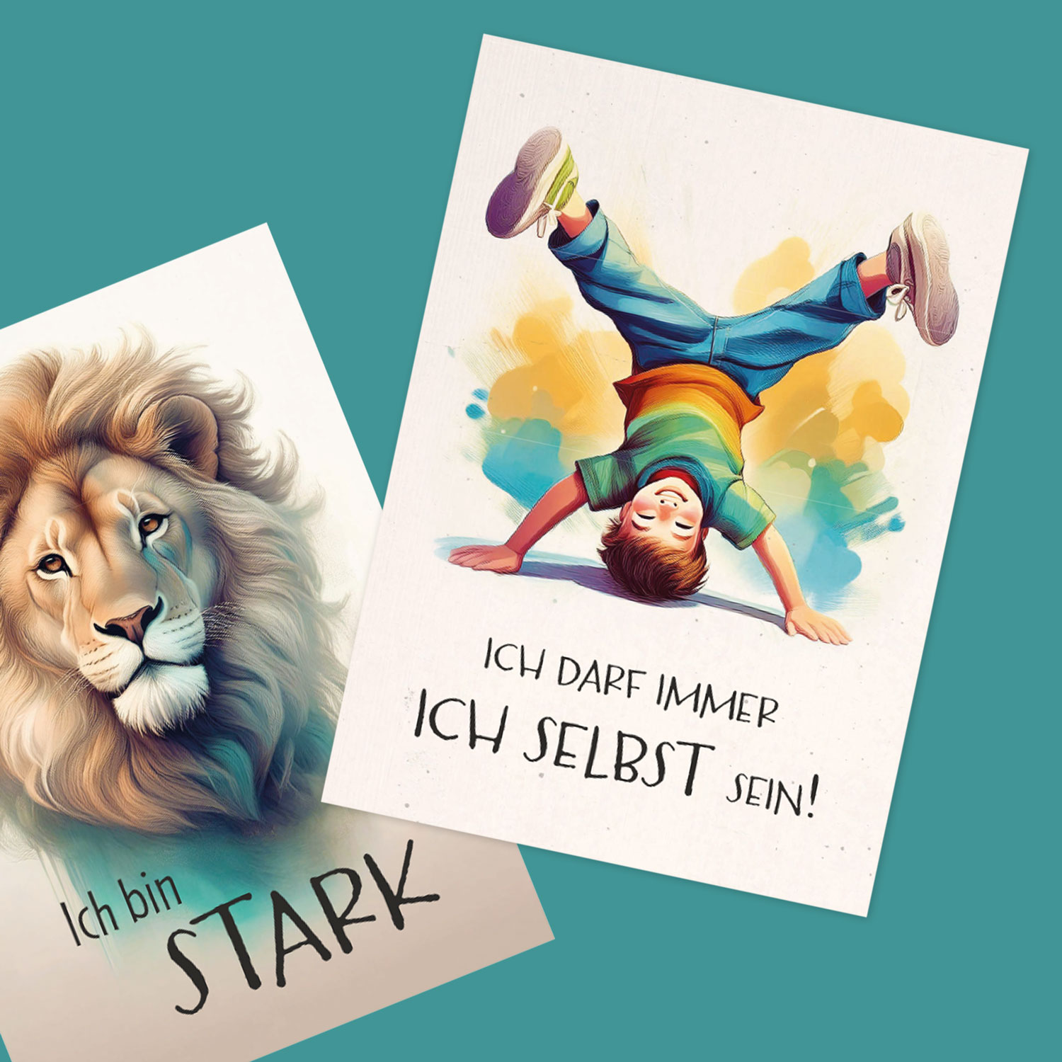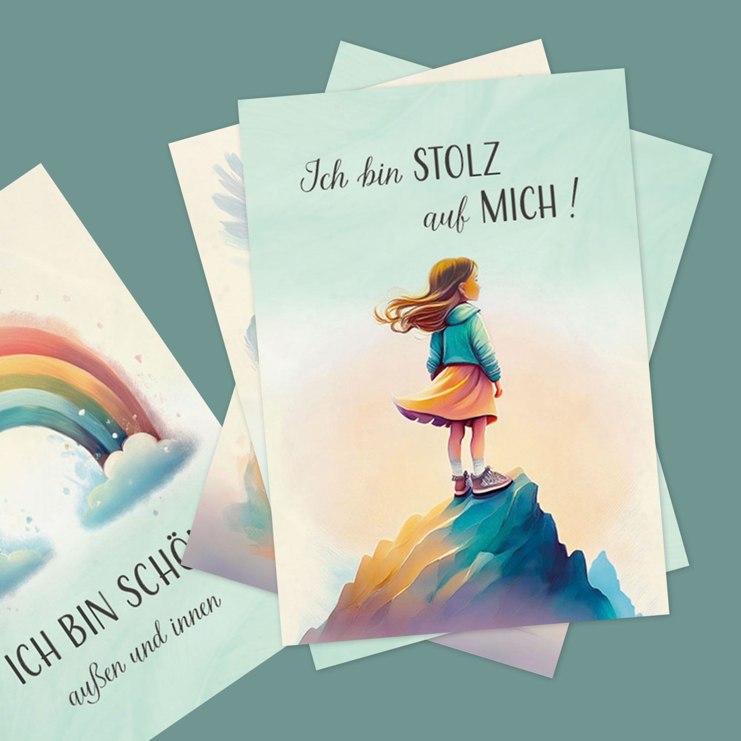 – 20 Affirmationskarten beidseitig bedruckt in einer praktischen Stülpschachtel aus Naturkarton