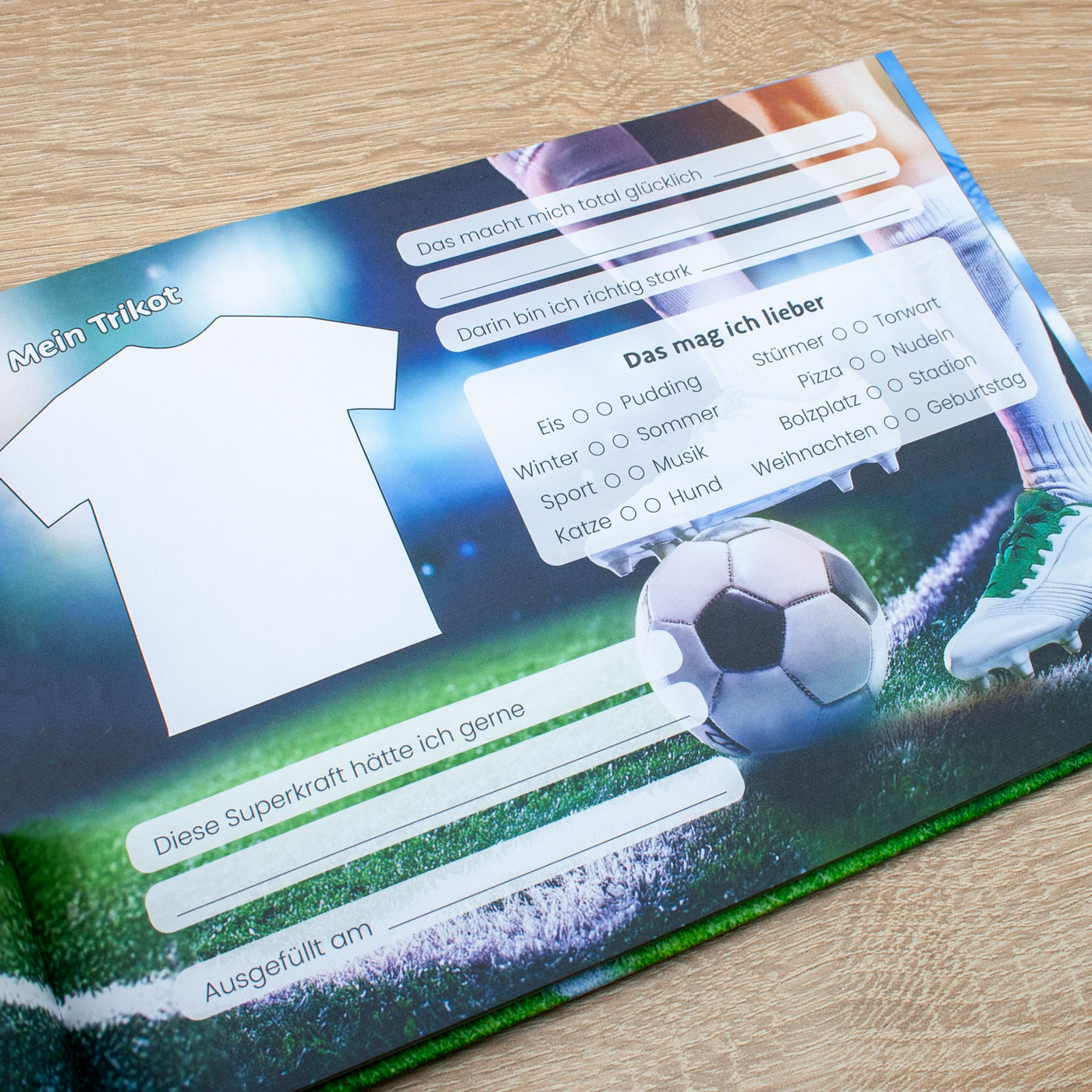 Dieses Freundebuch im Fußball-Design ist ein großartiges Erinnerungsalbum und ein perfektes Geschenk zum Geburtstag, zum Schulanfang oder zu Weihnachten – ideal für alle kleinen Fußballfans.