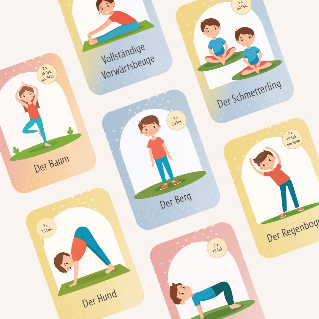 Entdecke unsere liebevoll gestalteten Yogakarten für Kinder! In diesem Set findest du 20 Karten im großen Format DIN A6, die speziell dafür entworfen wurden, die Freude am Yoga mit den Kleinsten zu teilen. Jede Karte erklärt einfache, kindgerechte Übungen, die die Beweglichkeit fördern, das Körper- und Selbstbewusstsein stärken und entspannend wirken.