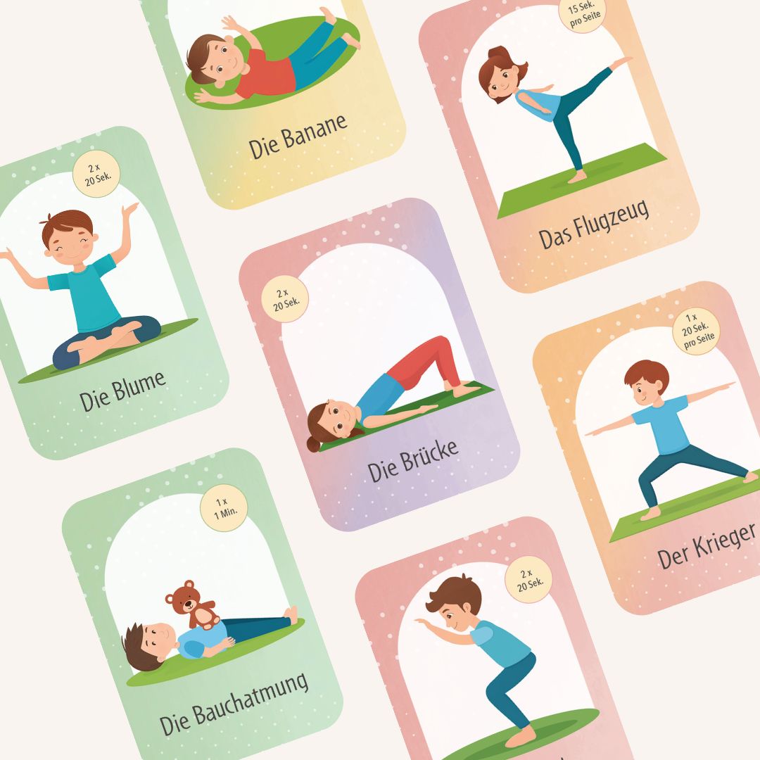 Eine genaue Erläuterung zu den Karten und der Ablauf einer Yoga-Einheit mit hilfreichen Vorschlägen liegt dem Set als Extrakarte bei.