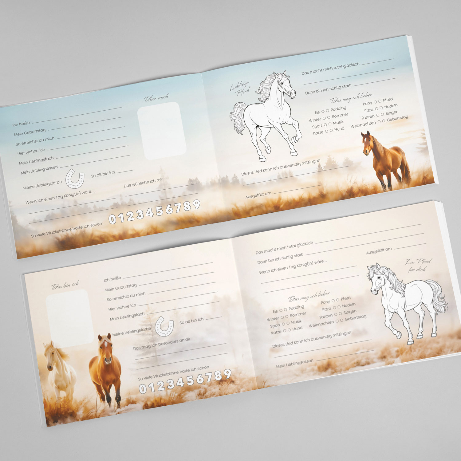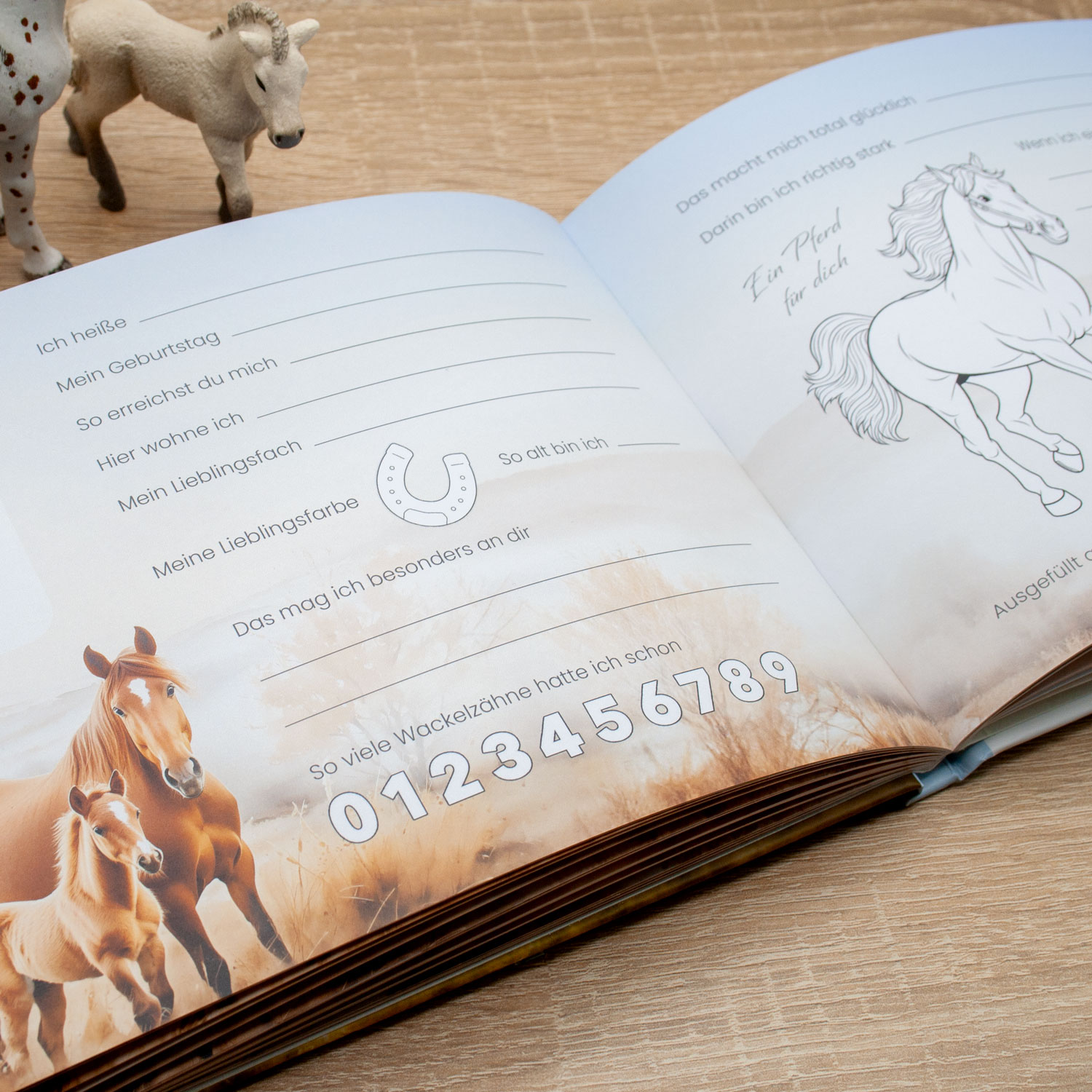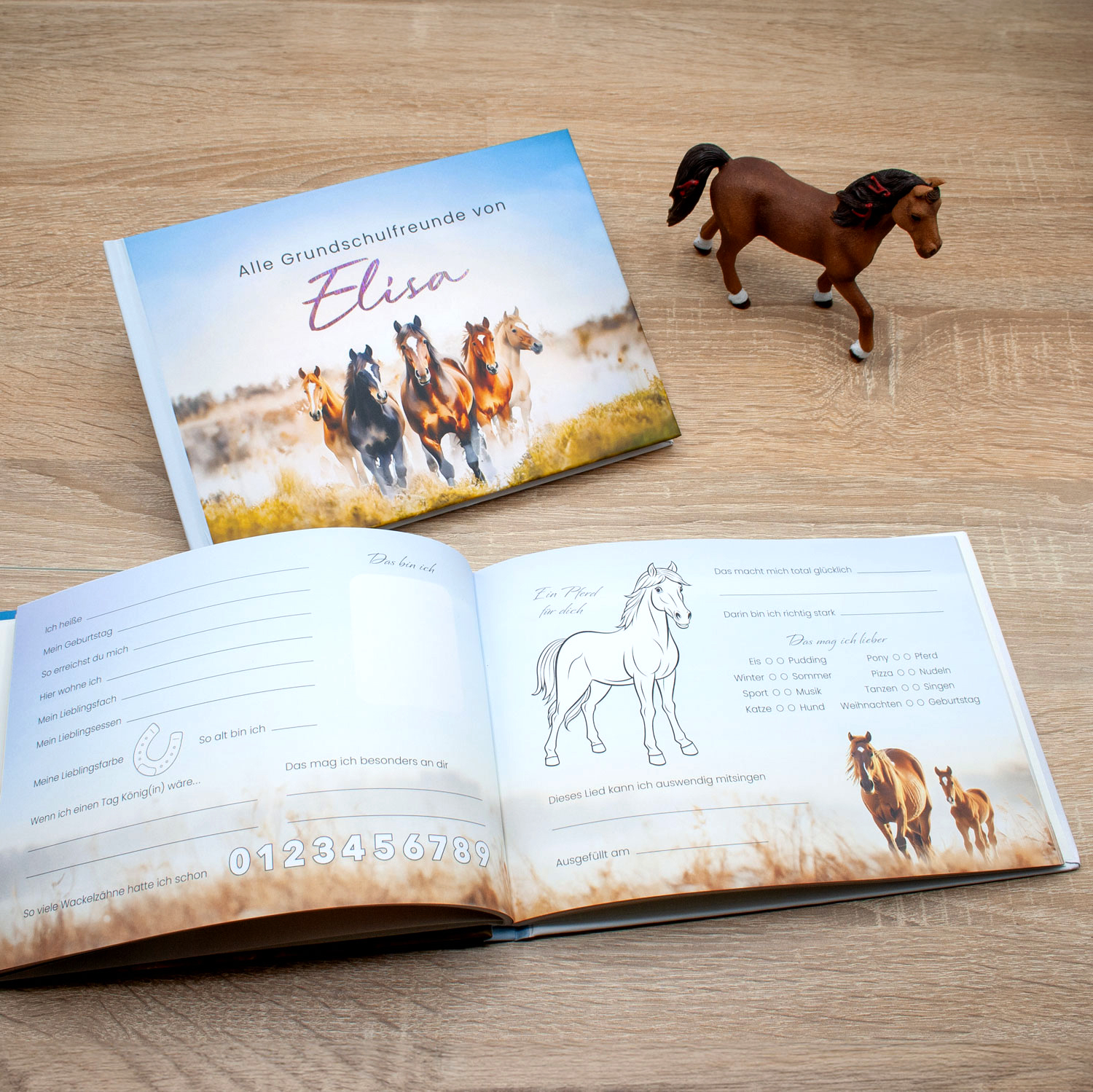 Dieses Freundebuch im Pferde-Design ist ein wunderschönes Erinnerungsalbum und ein perfektes Geschenk zum Geburtstag, zum Schulanfang oder zu Weihnachten – ideal für alle kleinen Pferdefans.