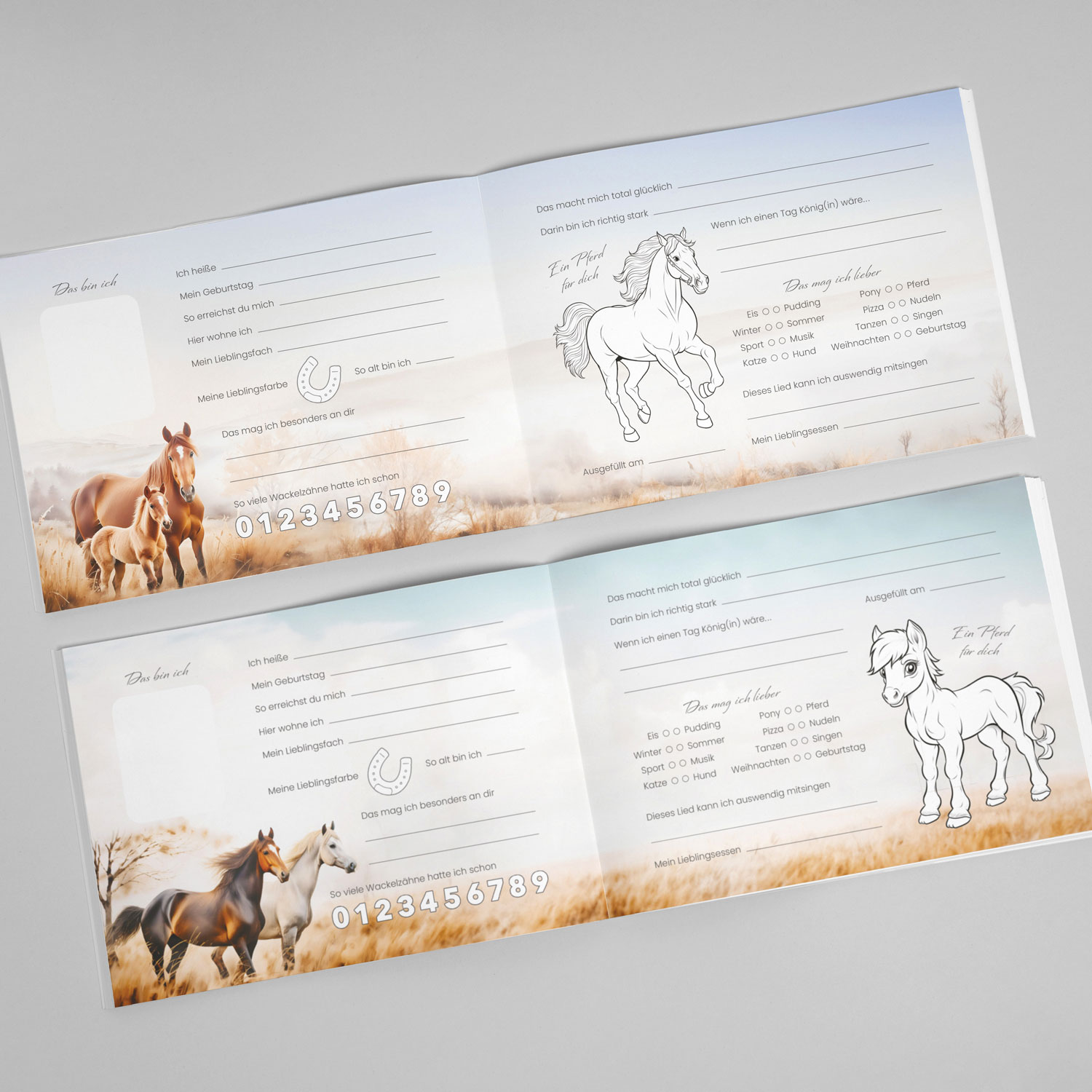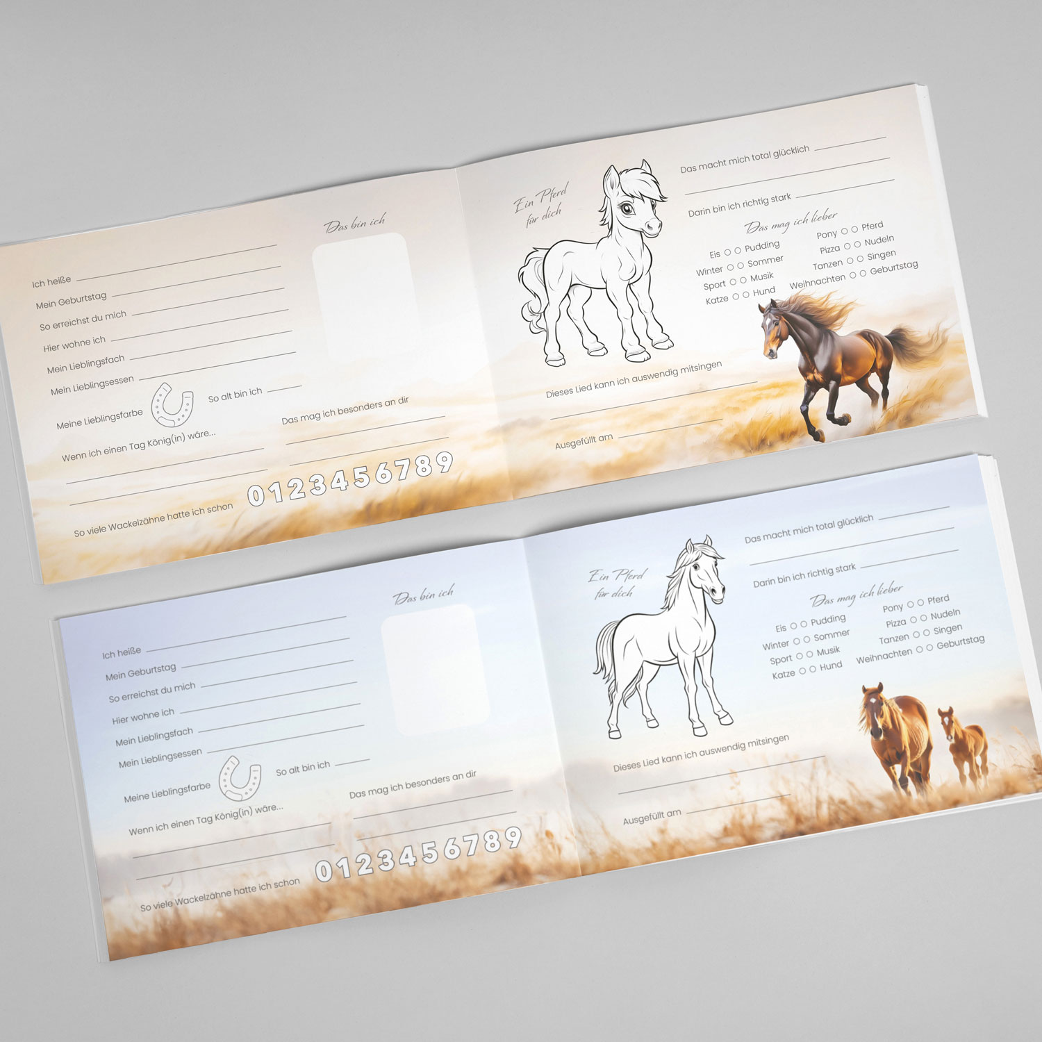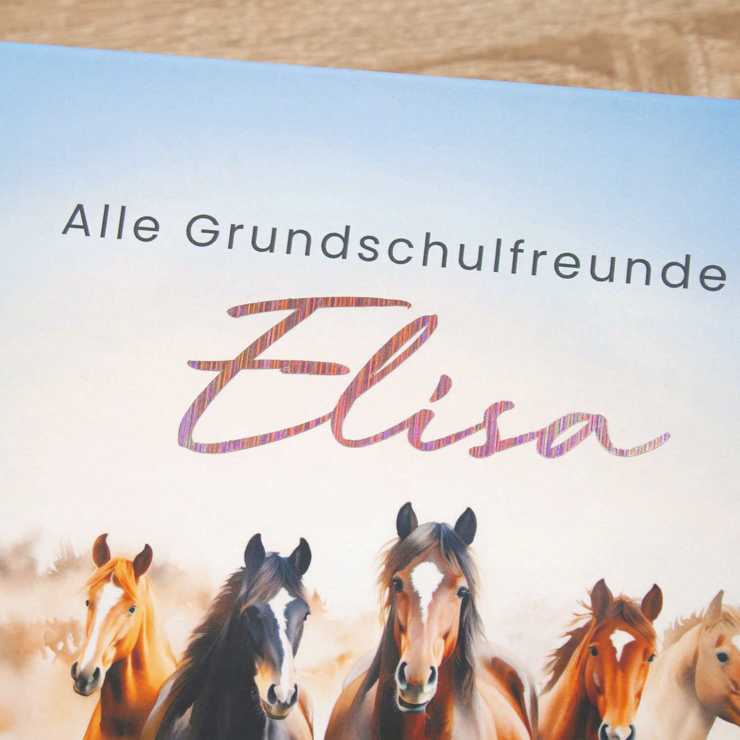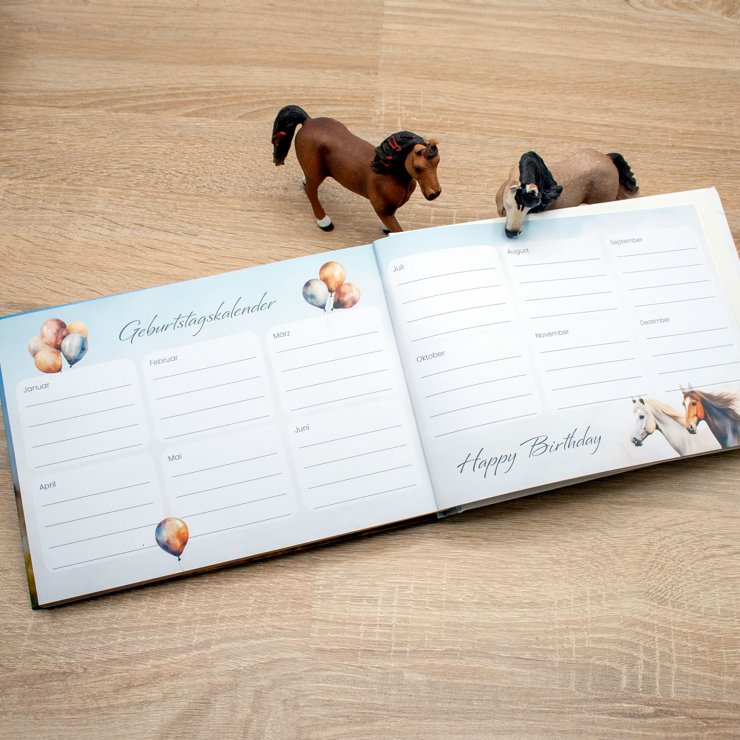Dieses Freundebuch im Pferde-Design ist ein wunderschönes Erinnerungsalbum und ein perfektes Geschenk zum Geburtstag, zum Schulanfang oder zu Weihnachten – ideal für alle kleinen Pferdefans.