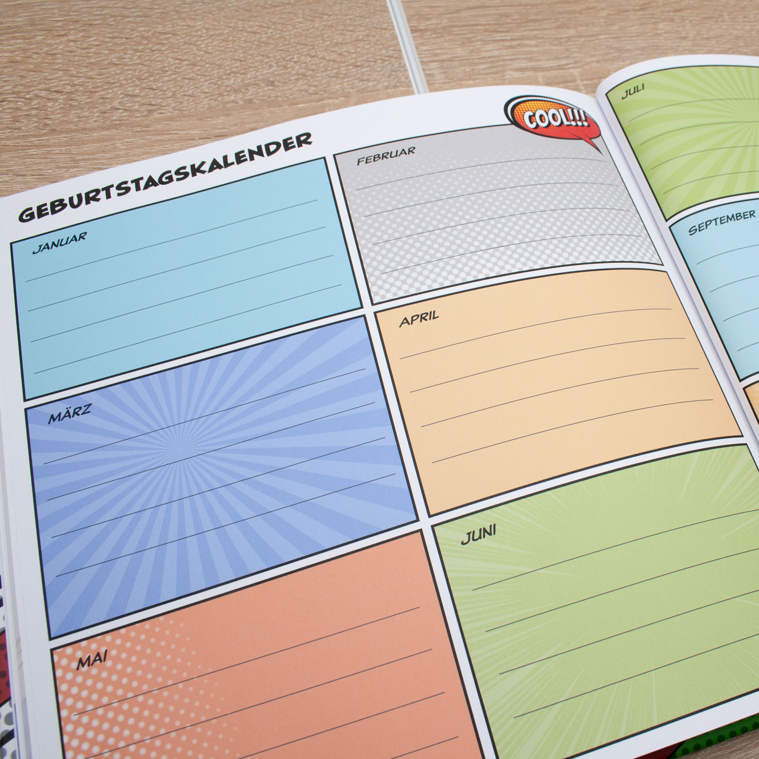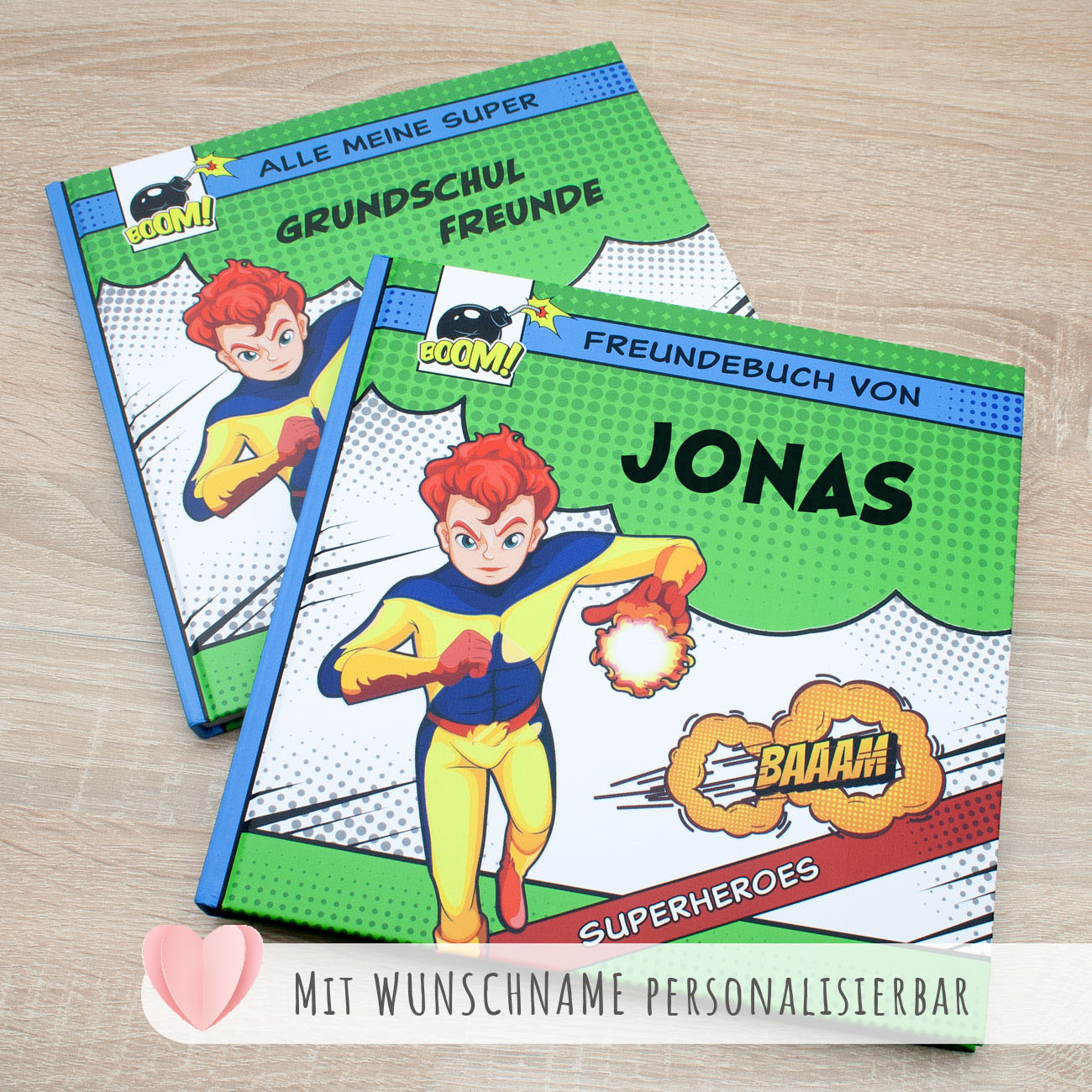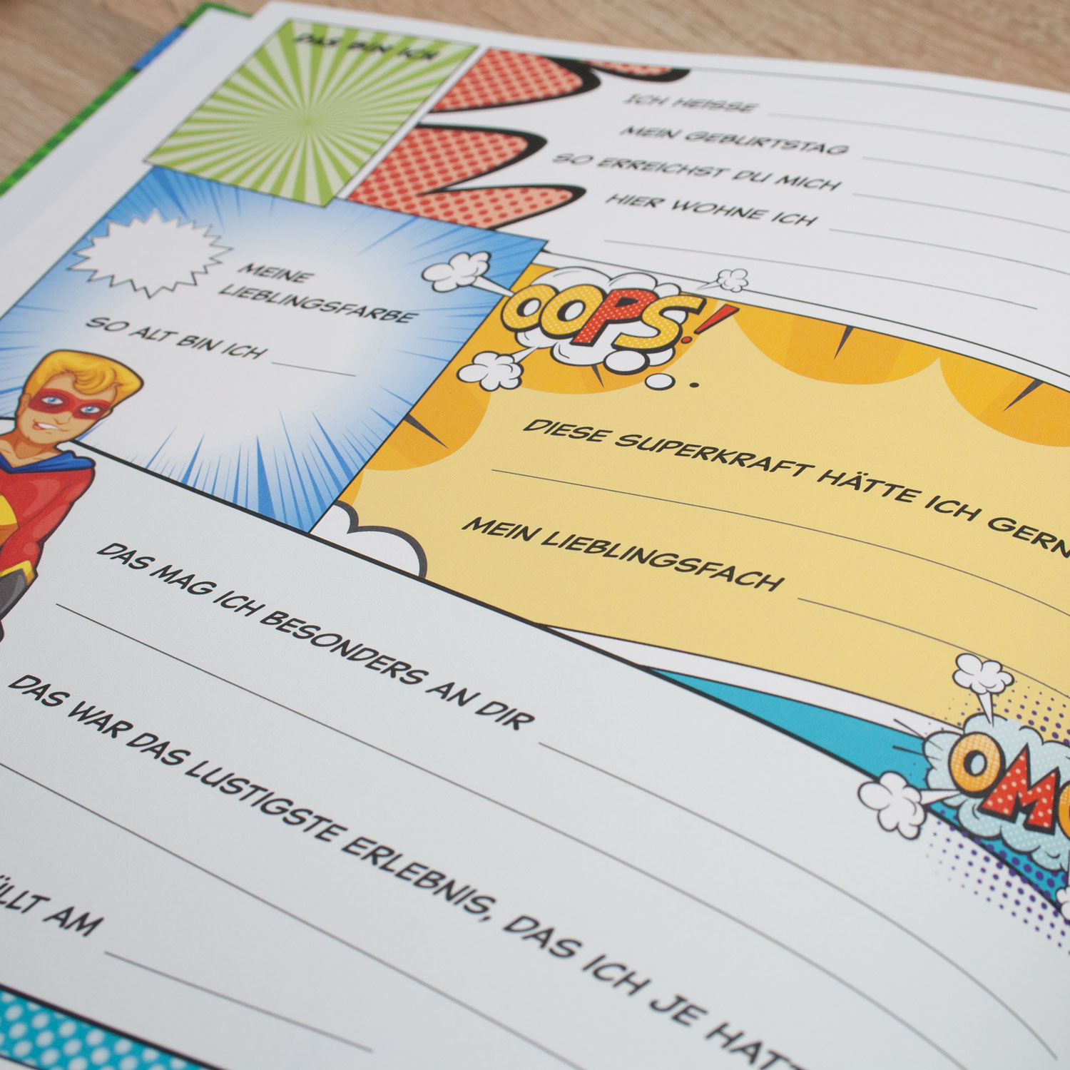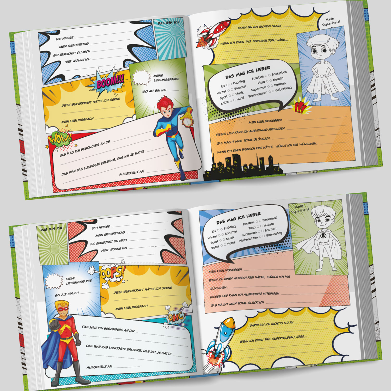 Dieses Freundebuch im Superhelden-Design ist ein fantastisches Erinnerungsalbum und ein perfektes Geschenk zum Geburtstag, zum Schulanfang oder zu Weihnachten – ideal für alle kleinen Comicfans.