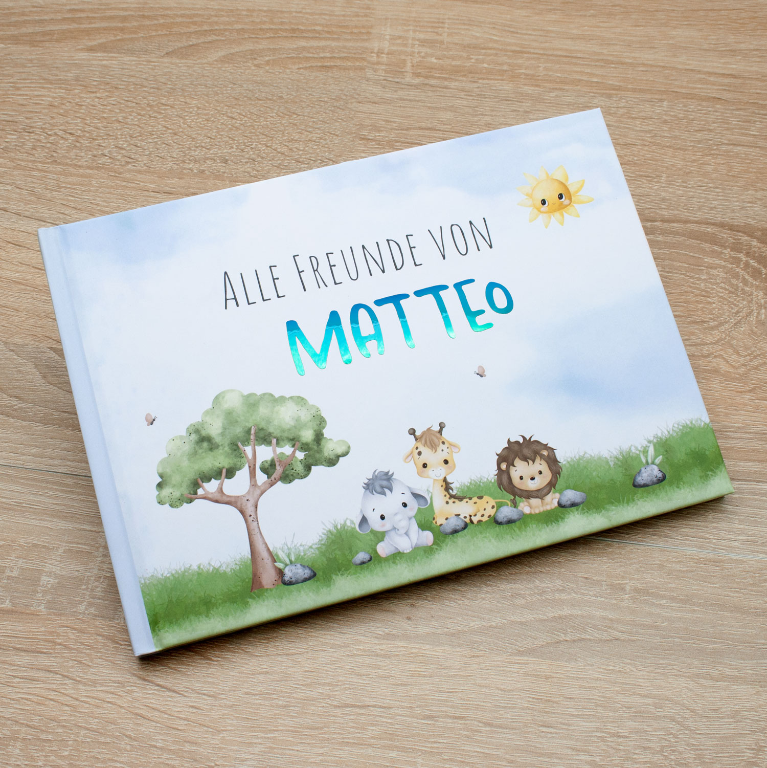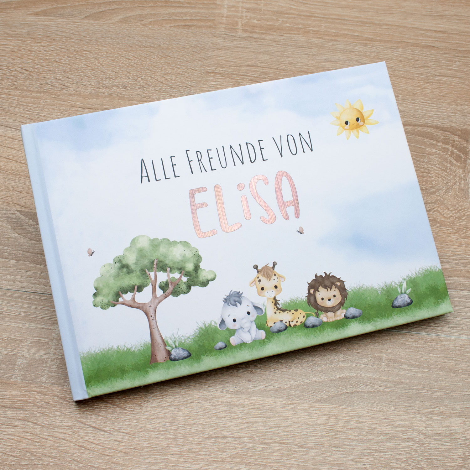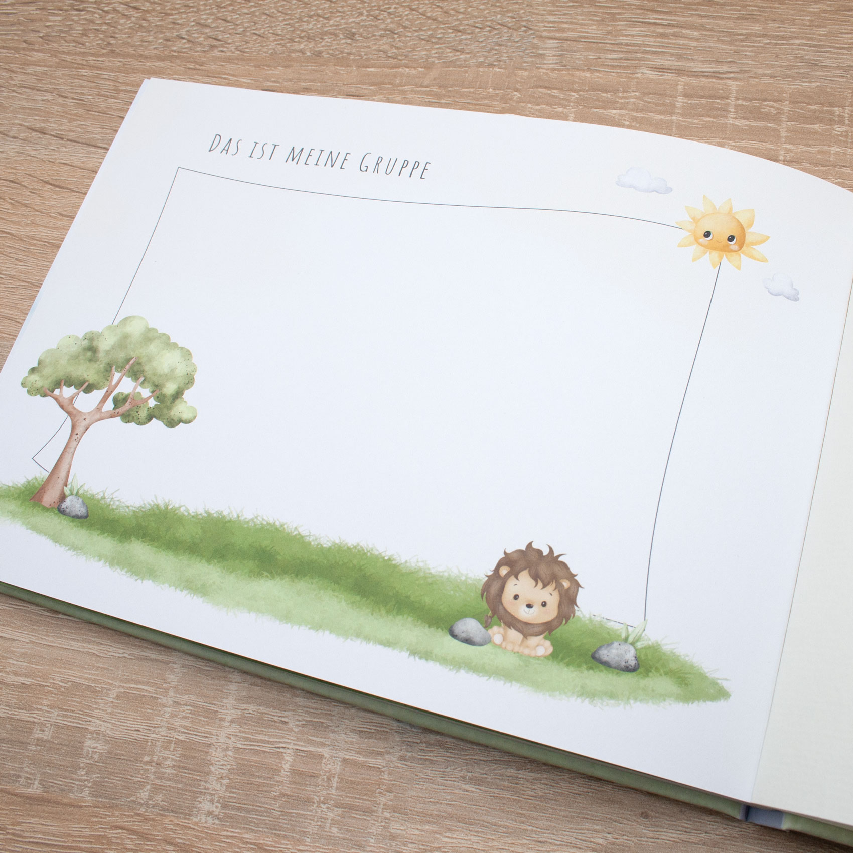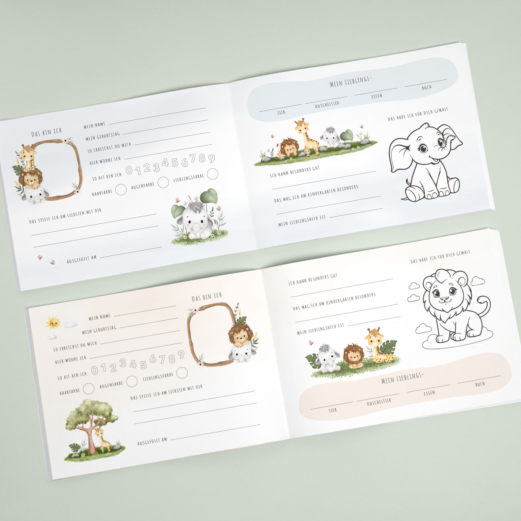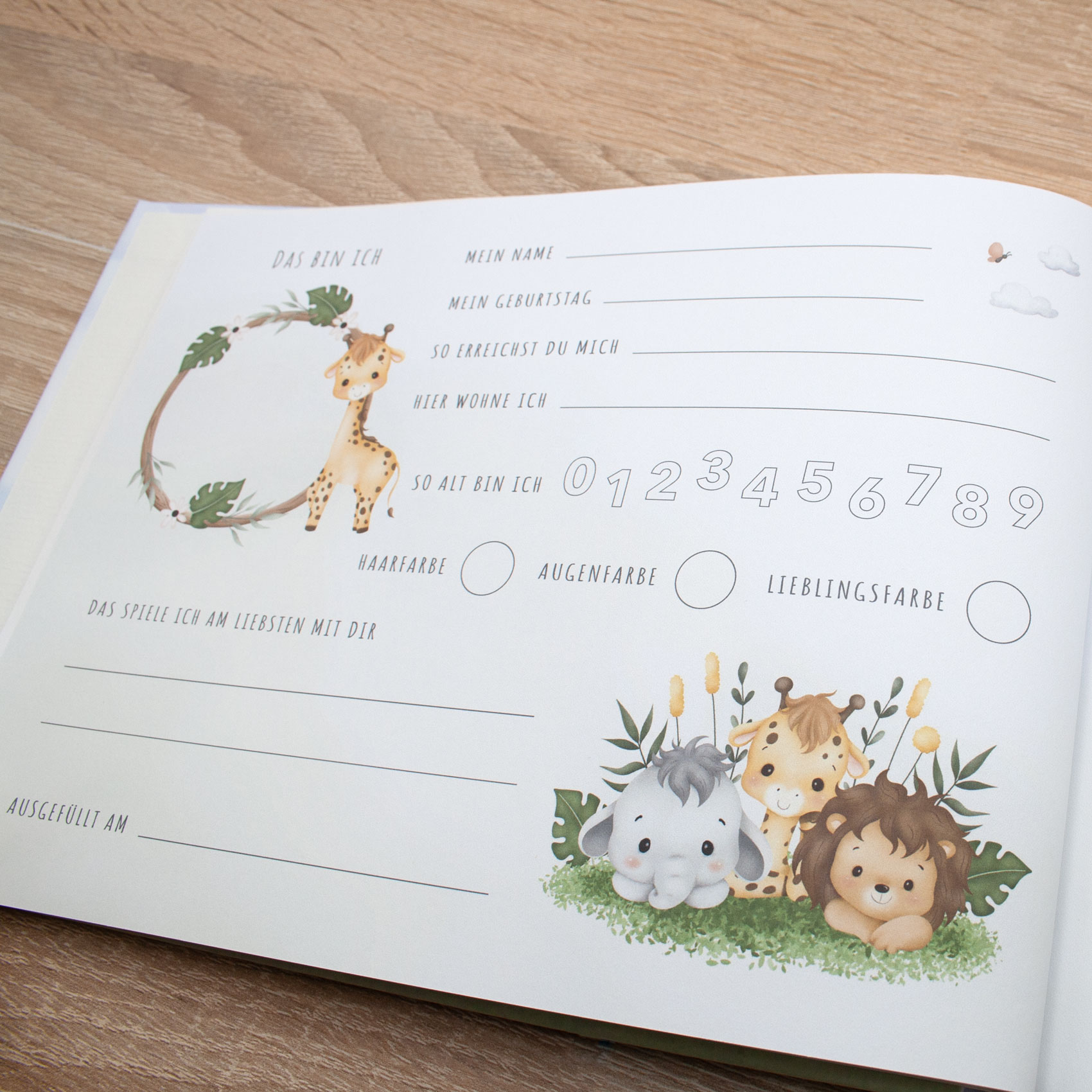 Dieses Kindergarten Freundebuch im Safari-Design ist ein tolles Erinnerungsalbum und ein perfektes Geschenk zum Geburtstag, zum Kindergartenstart oder zu Weihnachten – ideal für alle kleinen Tierfreunde.