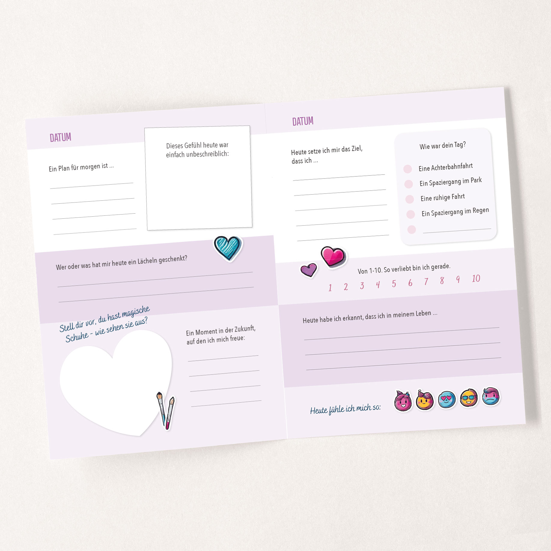 – Mehr als nur Schreiben: Neben geführten Tagebuchseiten gibt es kreative Mal- & Extraseiten, Platz für Fotos und persönliche Challanges.