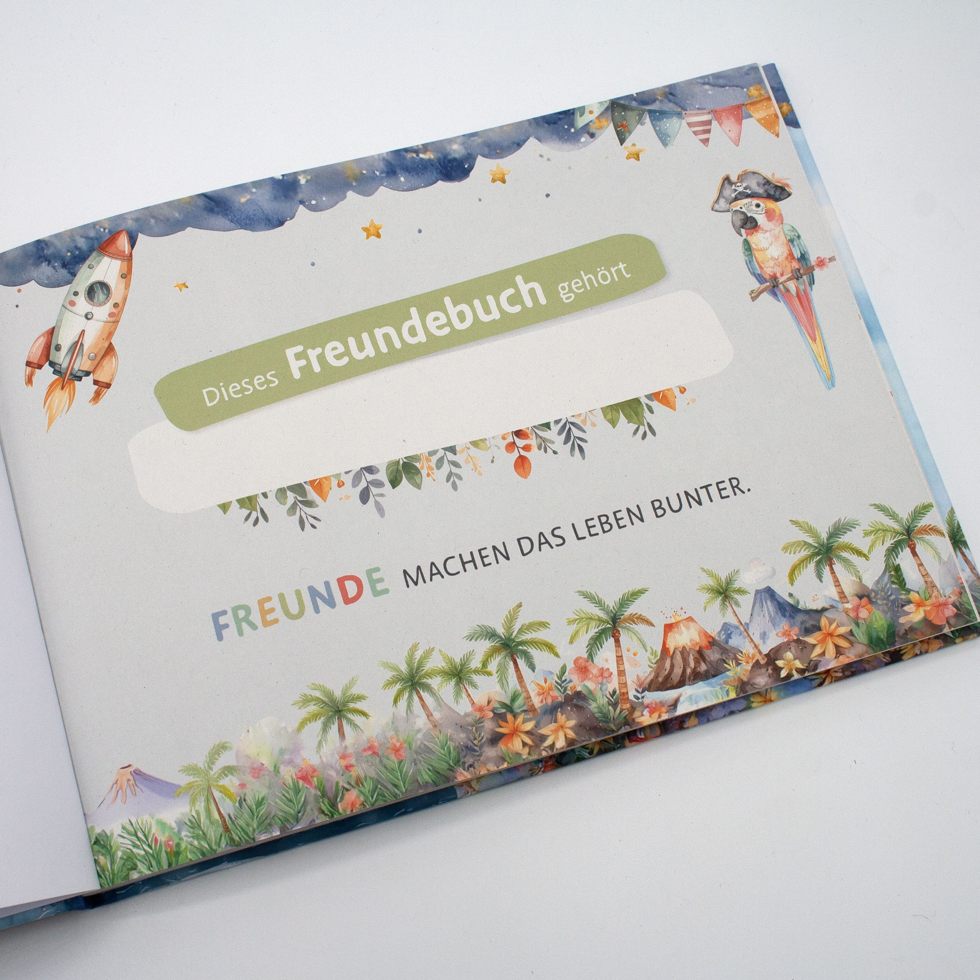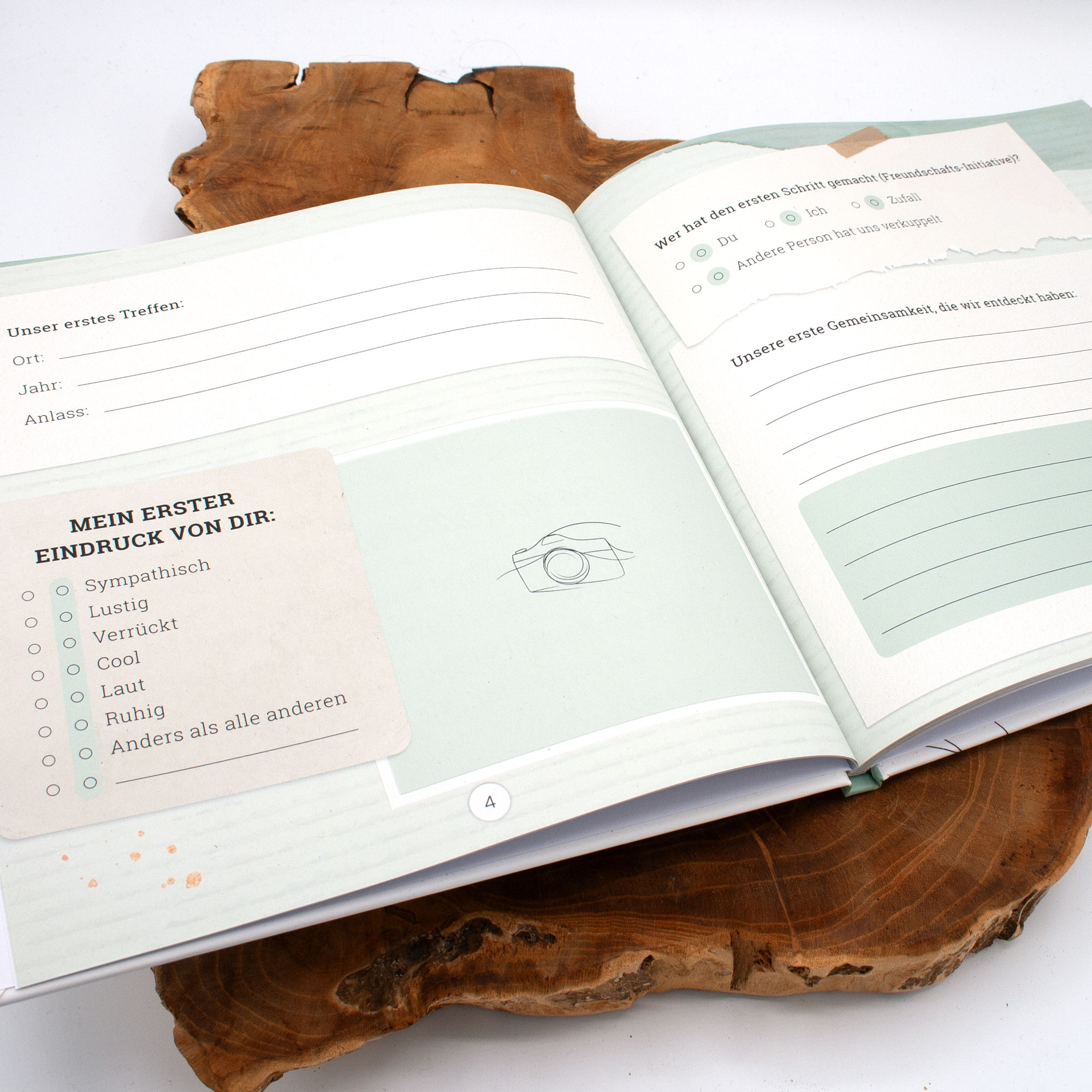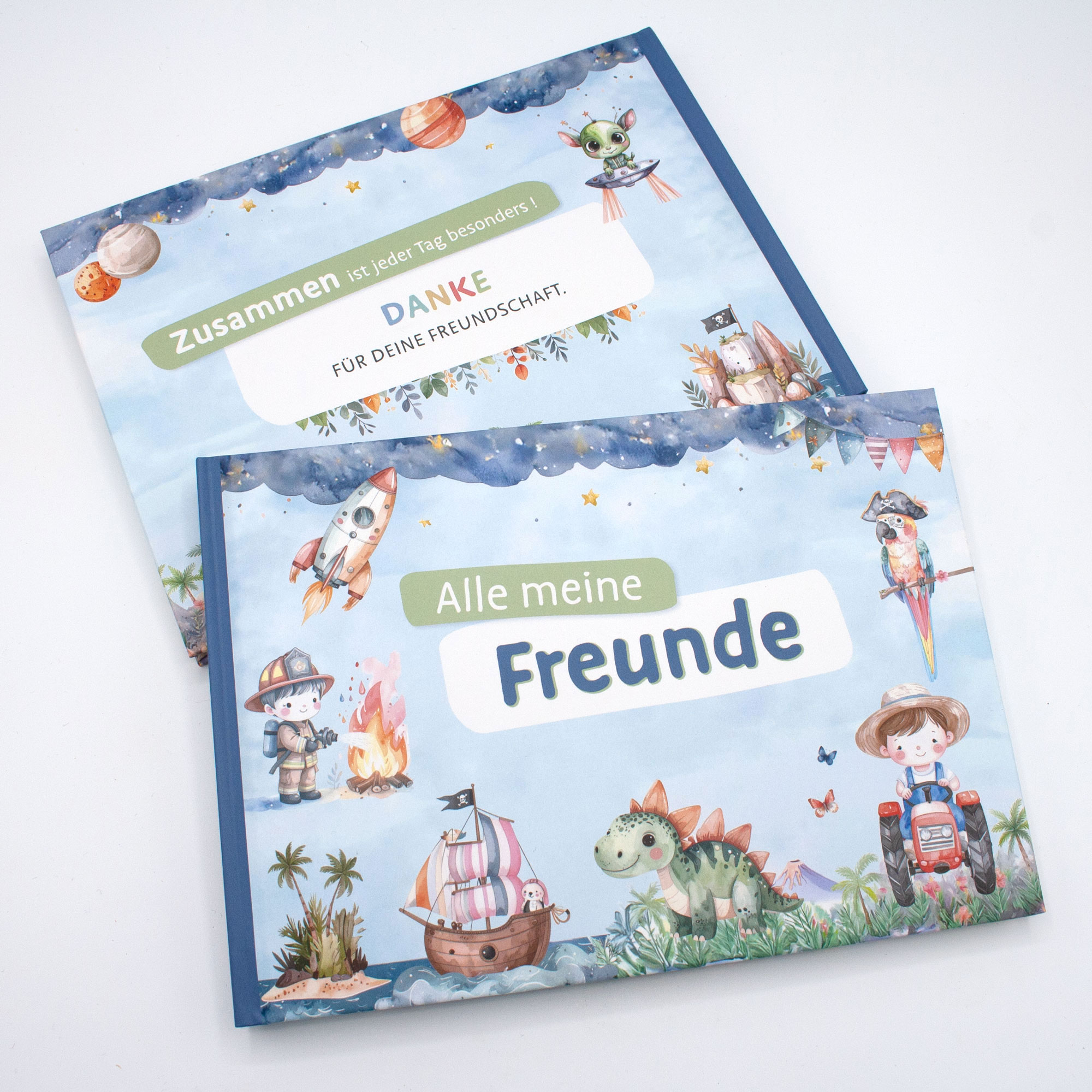 Stell dir vor: Ein stolzer Junge hält sein eigenes Freundebuch in den Händen – mit dem eigenen Namen vorne drauf. Neugierig werden die Seiten durchgeblättert, auf denen Freunde malen, Fragen beantworten und ihre kleinen Geschichten hinterlassen. Jede ausgefüllte Seite wird zu einer wertvollen Erinnerung an eine Zeit voller Spiel, Lachen und gemeinsamer Erlebnisse.