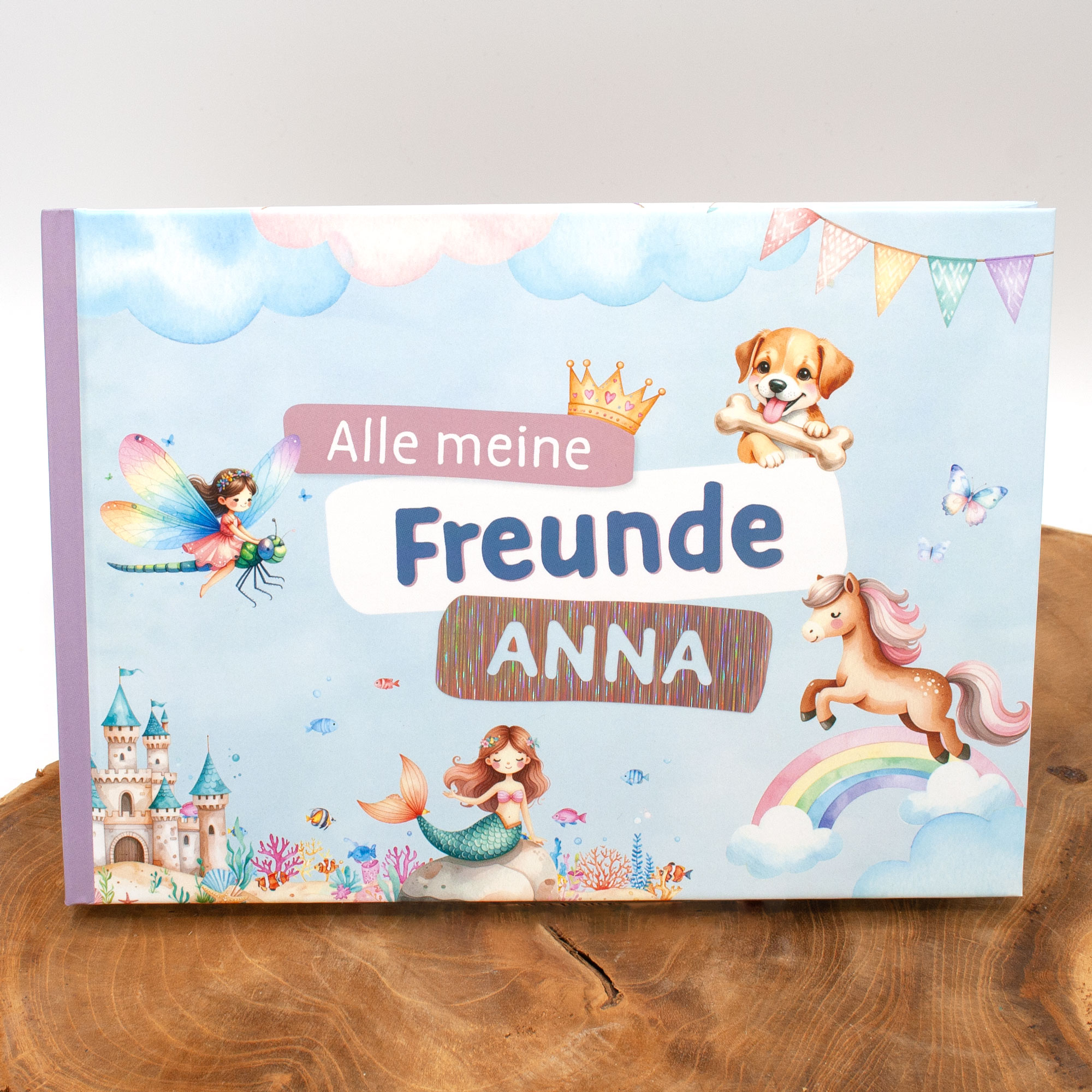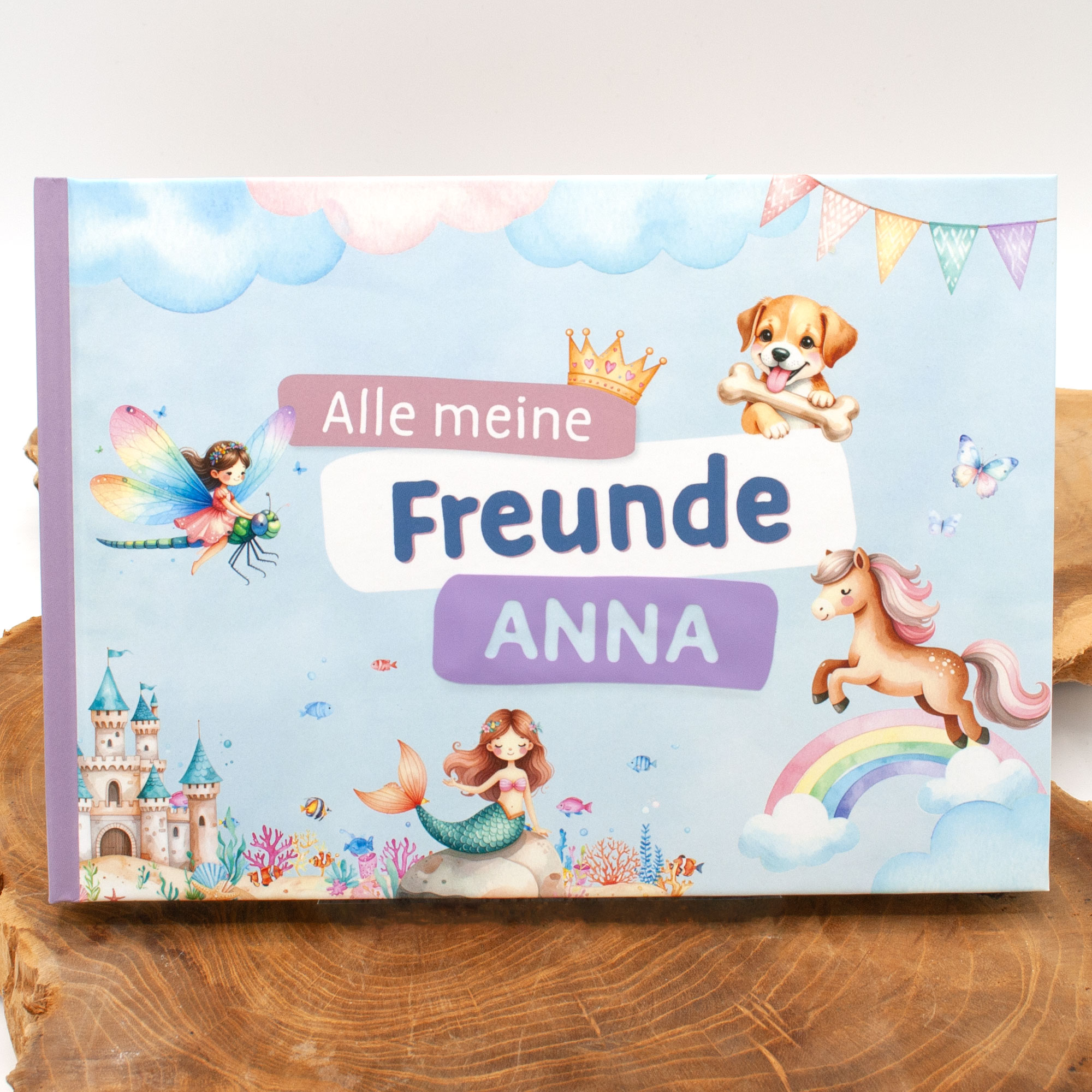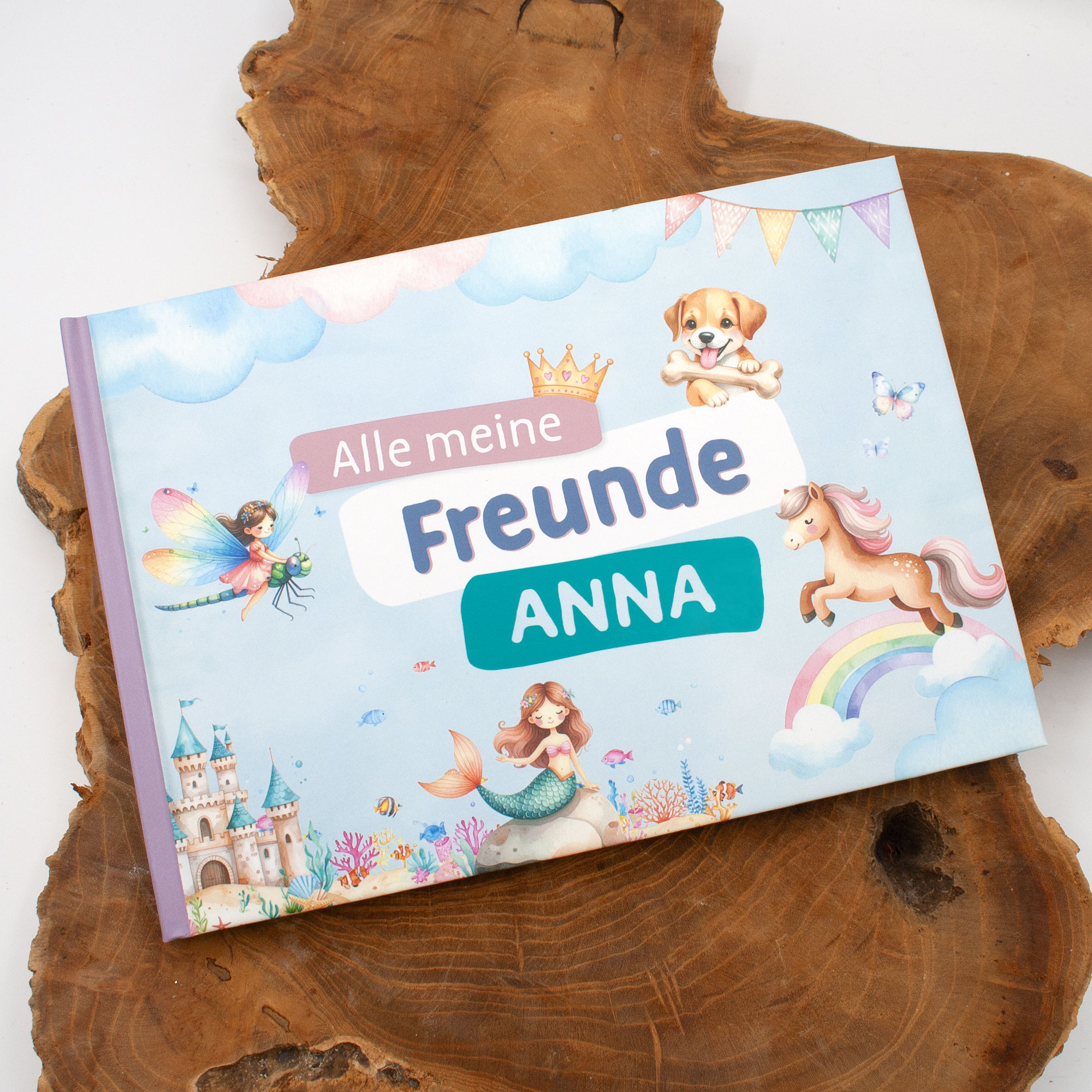 Ein einzigartiges Freundebuch für kleine Mädchen mit einem großen Herz, Fantasie und ganz viel Platz für Freundschaften – liebevoll gestaltet und personalisierbar mit dem Namen deines Kindes.