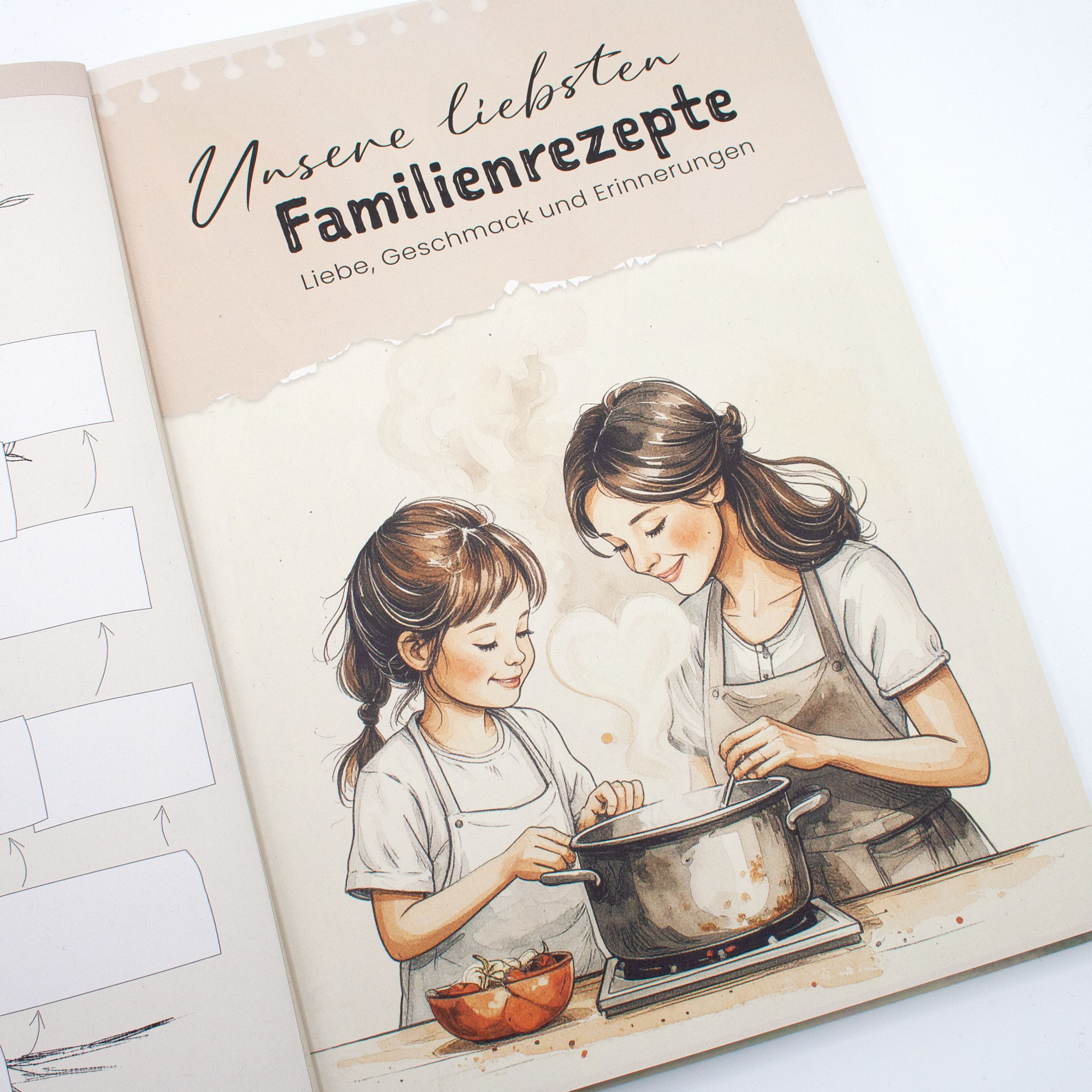 Liebevoll gestaltetes Familienkochbuch zum Ausfüllen & Personalisieren – bewahre Rezepte, Geschichten & Erinnerungen eurer Familie für Generationen.